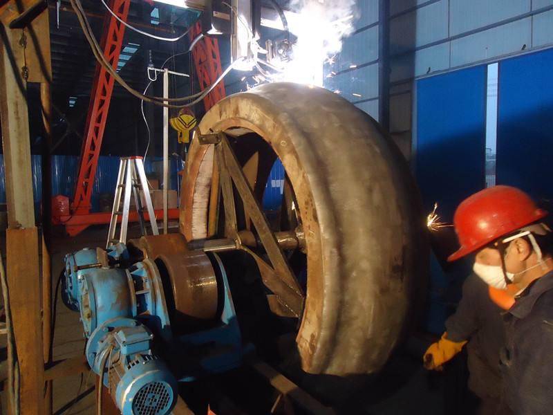 自保護電弧堆焊是這樣得名的,管狀焊絲的管中還裝有造氣劑等焊劑, 堆焊時不需要外加氣體保護,因此,這種焊絲的堆焊稱為自保護電弧堆焊,是熔化極氣體保護堆焊的一個變型。自保護電弧堆焊的工藝性能好,一般情況下不用預熱即可堆焊。自保護電弧堆焊多用小直徑的堆焊焊絲(2. 4mm),一般用直流反接;若用直流正接則飛濺加大,堆焊層質量下降。熔敷速度受到電流、電壓和堆焊焊絲伸出長度的影響,電流增大時,熔敷速度加大,但熔深和稀釋率也加大。堆焊時,電壓和送絲速度的調節應保證能得到飛濺小的穩定電弧。若電壓太大,碳和合金元素就會燒損嚴重。焊接速度的調節既要保證堆焊層厚度,又不能使熔池存在時間過長,以免影響保護效果。